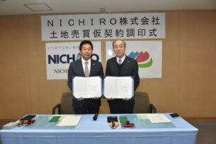 車両及び一般産業機械向けのフィルターの製造販売を手掛けており、市内に4つの工場を建設されているNICHIRO株式会社と、土地売買仮契約を締結しました。